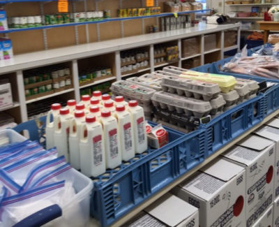 In keeping with our nutrition policy, we try to provide low-sugar and low-salt canned goods and limit the amount of highly processed and sugary food on our shelves. We have a home baking section that provides flour, yeast, baking powder, baking soda, oil, spices and other cooking supplies.